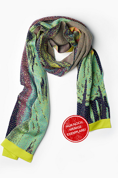 Basierend auf den Arbeiten „Exercises: Eins, Zwei, Drei“ der Künstlerin Stephanie Hess, kreierte die Berliner Modedesignerin Yvonne Wadewitz das Design für diesen aussergewöhnlichen Schal. Josephine Hosse, Gründerin des Schweizer Accessoireslabels „Phine“, lässt ihre langjährigen Materialkenntnisse in die Zusammenarbeit einfliessen. Die extra feine Merinowolle aus Italien, die komplexe Strickmethode Jacquard, sowie die präzise Anfertigung in Deutschland, sorgen für dieses hochqualitative Kunstwerk: