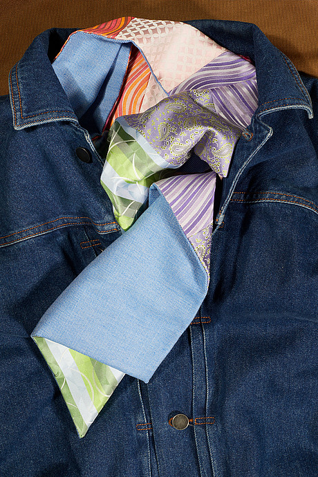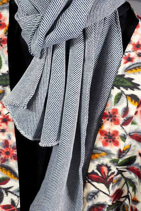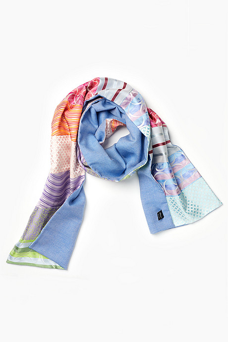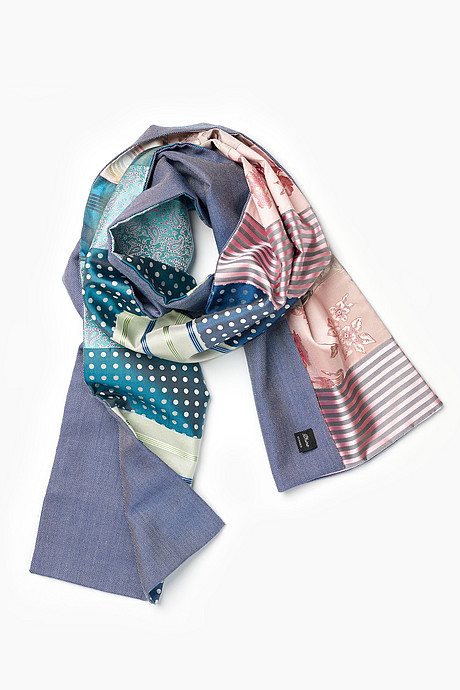 Schal doppelseitig: Uni jeans mit Seidenpatchwork blau, grün, rosa Flora