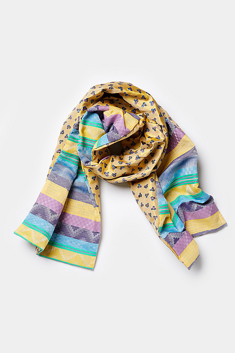 Peru lila/gelb/blau/grün (Baumwolle) & Blume naiv gelb/violett/royal (Seide)
