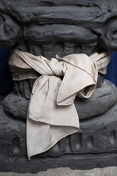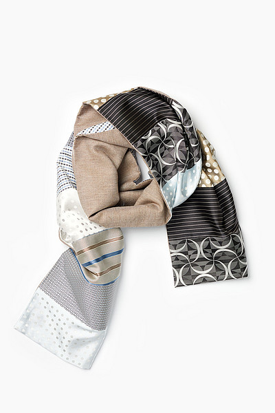 Schal doppelseitig: Uni beige mit Seidenpatchwork beige, blau, silber