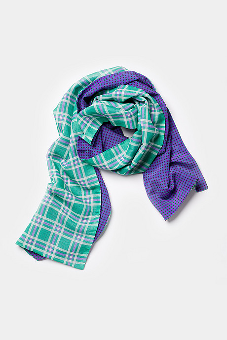Karo gross grün /lila/weiss (Baumwolle/Leinen) & Tupfen violett/h'grün/d'grün (Seide)