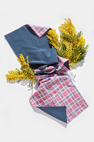Karo gross pink/blau/weiss (Baumwolle/Leinen) & Tupfen d'blau/cyan/rosa (Seide)