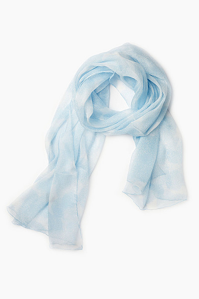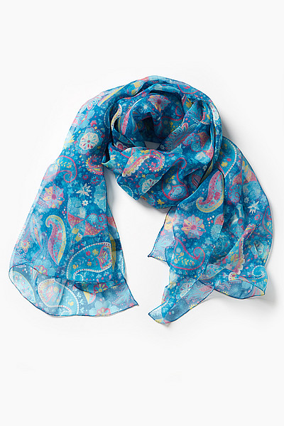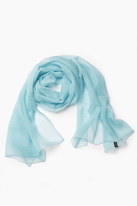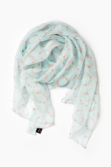 Schal: Filetti grün/blau/helblau/gold auf weiss