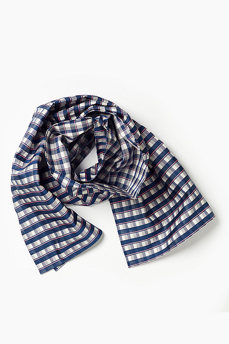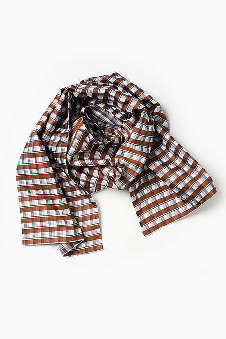 Schal: Barré blau, rost, hellblau, rosa, gelb