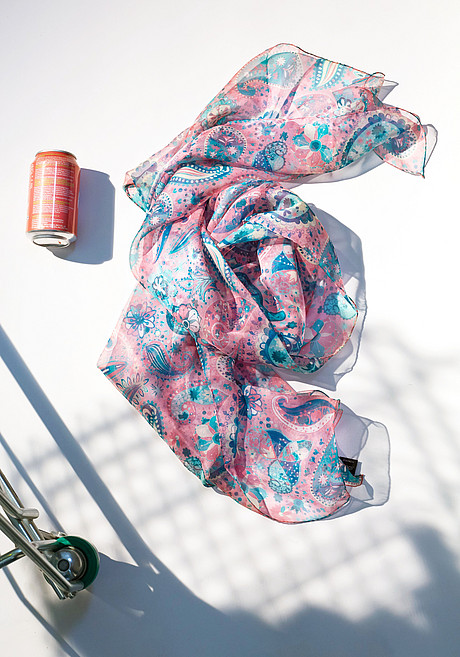 Seide isoliert. Sie kühlt an warmen Tagen und wärmt dezent bei Kälte, ist leicht und luftig und dank ihrer Reissfestigkeit und Farbbrillianz ein langlebiger Begleiter für den Alltag, für lange Abende und rauschende Feste:
